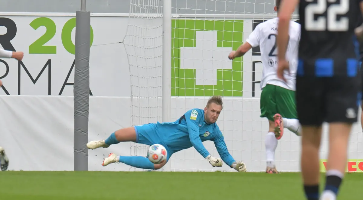 Dann war aber auch mal Gütersloh an der Reihe: Nach einer Ecke schoss Kandic aus gut 22 Metern aufs Tor, SCP-Torwart Florian Pruhs parierte den guten Versuch sicher (36.). Die beste Chance der ersten Halbzeit hatten die Gastgeber (39.): Wieder war es Stefano Marino, der Justus Henke stehen ließ und frei auf Peters zulief. Der wehrte den Schuss aber mit dem Fuß ab. Klasse, Jarno!