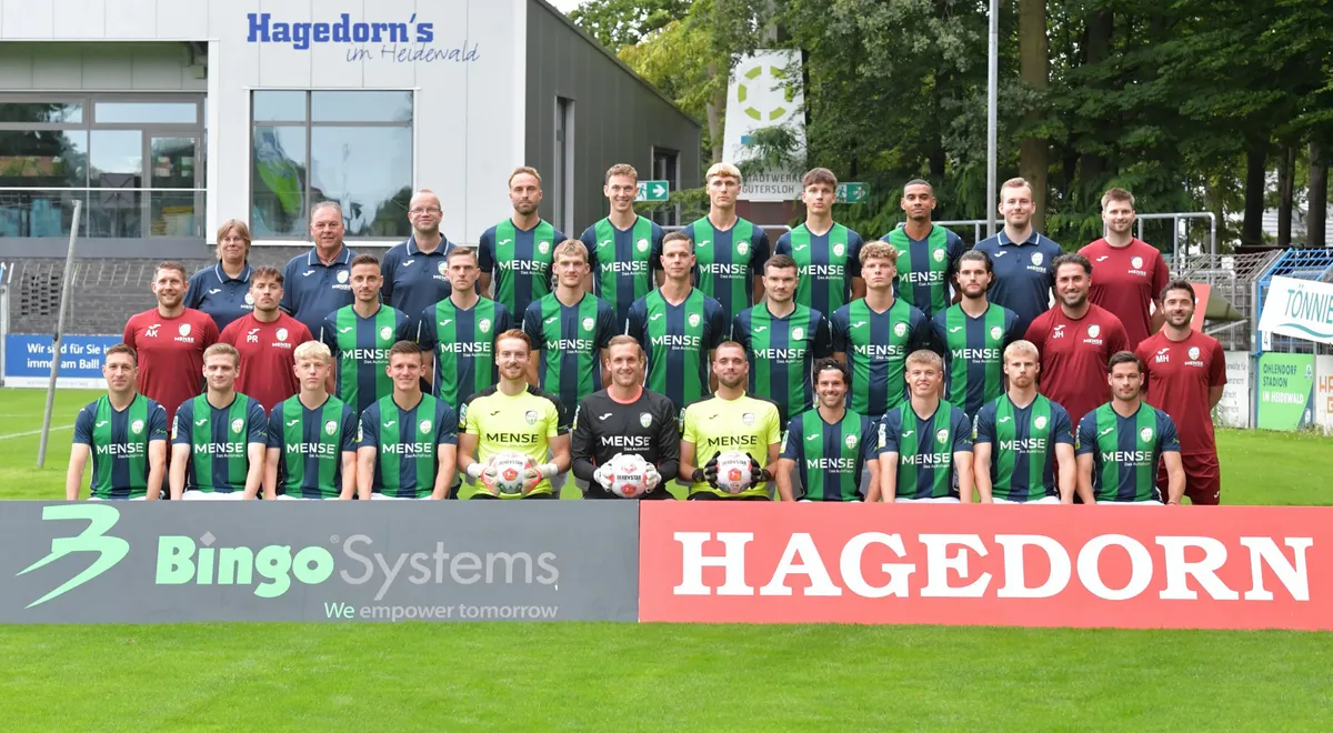 Mittlere Reihe von links: Co Trainer Andre Kording, Torwart-Trainer Patrick Richter, Patrik Twardzik, Lennard Rolf, Luis Frieling, Jannik Borgmann, Björn Rother, Henri Bollmann, Justus Henke, Trainer Julian Hesse und Co-Trainer Matthias Haeder.