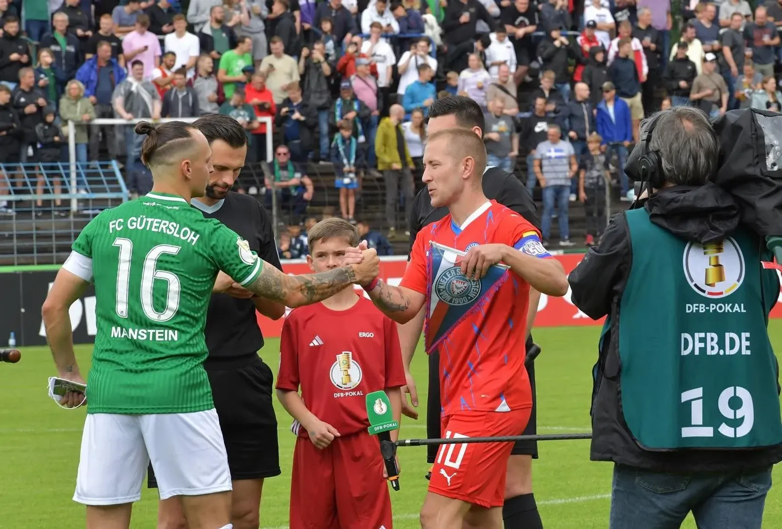 Saison 25/26 (1. Runde) FC Gütersloh - 1. FC Union Berlin Saison 23/24 (1. Runde) FC Gütersloh – Holstein Kiel 0:2 FC Gütersloh: Peters - Schauerte, Obst, Beuckmann, Widdecke - Twardzik, Manstein (68. Rolf), Freiberger, Buckmaier (67. Ocansey), Dantas - Esko (67. Kandic). Trainer: Julian Hesse Tore: 0:1 Fridjonsson (72.), 0:2 Fridjonsson (90.+3). Besonderes Vorkommnis: Buckmaier schießt einen Foulelfmeter über das Tor. Zuschauer: 5.259