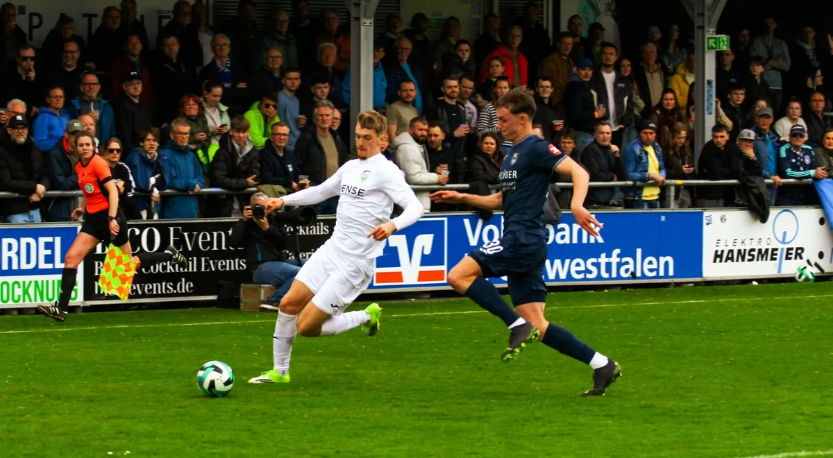 Das Kreis-Gütersloh-Duell in der Regionalliga West hat keinen Sieger gefunden: Der FC Gütersloh entführte durch ein 1:1 (1:1) beim SC Wiedenbrück vor 1.495 Zuschauern einen Punkt aus dem Jahnstadion. „Am Ende des Tages ist es ein leistungsgerechtes Unentschieden“, sagte FCG-Trainer Julian Hesse. In einem intensiven und vor allem in der ersten Halbzeit rassigen Match verteilte der Schiedsrichter insgesamt zehn gelbe Karten, einige davon waren überzogen, die Partie war zu keinem Zeitpunkt unfair.