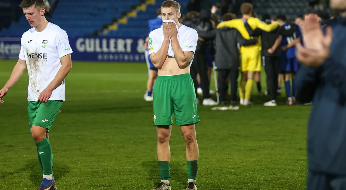 Schade! Bitter! Ärgerlich! Der FC Gütersloh ist im Halbfinale des Krombacher Westfalenpokals ausgeschieden. Beim VfL Sportfreunde Lotte verlor der FCG vor 1.134 Zuschauern im Stadion am Lotter Kreuz, davon gut 400 aus Gütersloh, mit 1:2 (0:0). Nach einer 1:0-Führung musste der FCG einen Doppelschlag hinnehmen und spielt in der kommenden Saison nicht im DFB-Pokal.