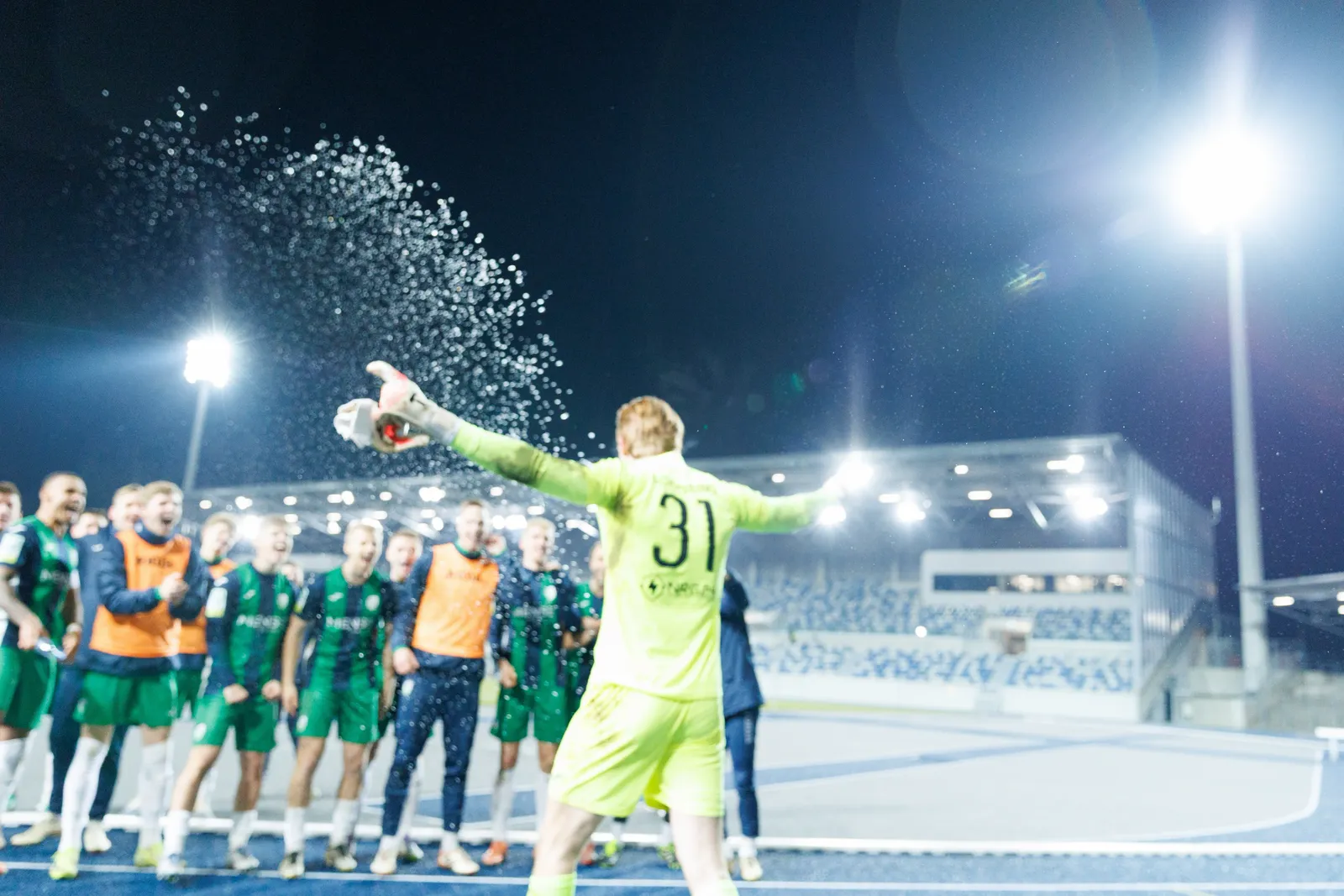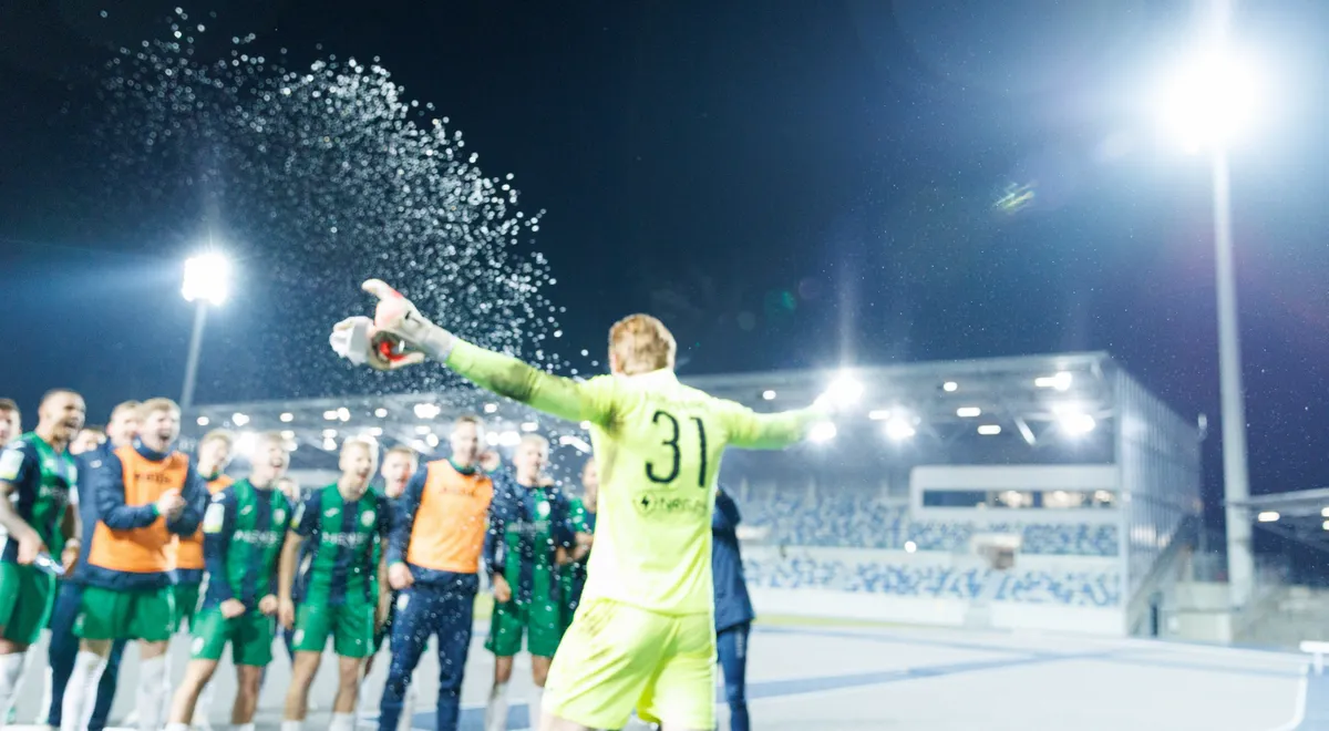 Zum Foto: Der FCG feiert den Einzug ins Halbfinale, als sich die Mannschaft mit 4:3 nach Elfmeterschießen durchsetzte.
