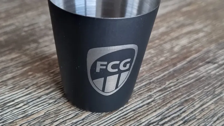 Last but not least gibt es erstmals Edelstahl Shotbecher mit unserem Wappen. Damit lässt sich prima auf die ersten Regionalliga Punkte anstoßen. Die schwarz ummantelten Becher mit lasergraviertem FCG-Wappen gibt es einzeln für 5 € oder als Viererpack für 18 €. Wenn der Becher mal runterfällt, kein Problem, denn Dank des robusten Edelstahls gibt es keine Scherben.
