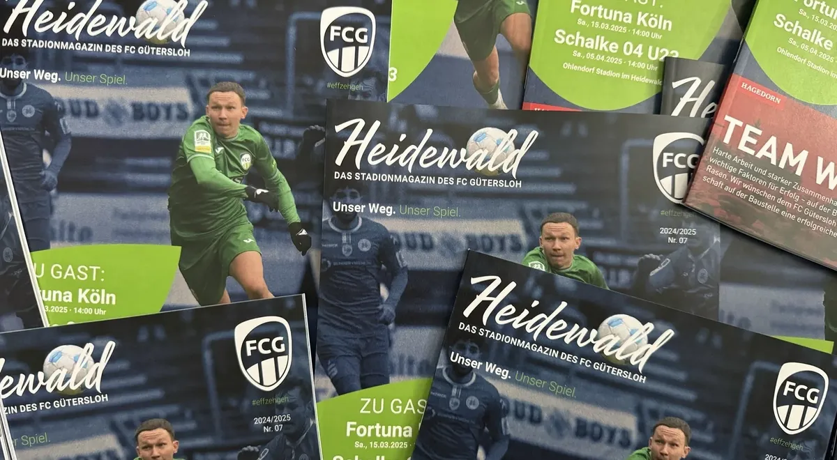 Das neue Stadionmagazin des FC Gütersloh ist gedruckt. Es erscheint zu den Heimspielen gegen Fortuna Köln am Samstag (Anstoß 14 Uhr) und die U23 des FC Schalke 04 am Samstag, 5. April. Das Heft hat 68 Seiten und gibt es in den Filialen der Bäckerei Glasenapp, bei beiden Heimspielen und als Online-August hier auf der Homepage.