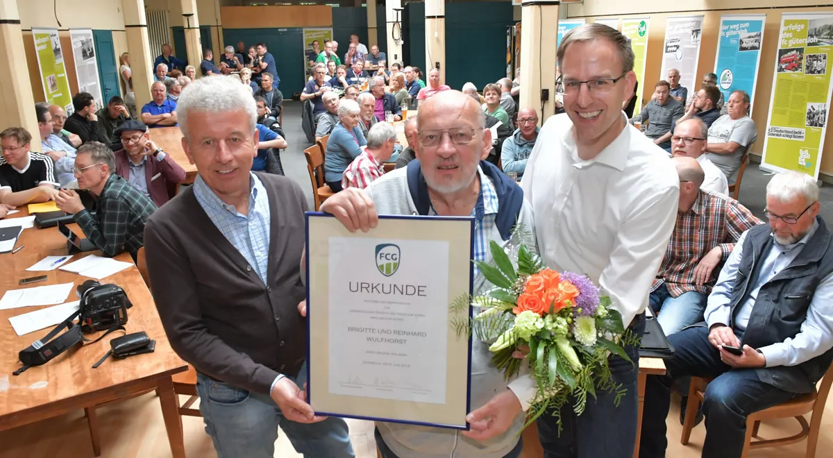 Keine großen Worte machen, sondern helfen! Das war auch in den letzten Jahren die Devise des Ehepaars Wulfhorst. Brigitte und Reinhard unterstützten den FCG immer wieder finanziell sehr großzügig und halfen im Jahr 2017 aktiv mit, den Untergang des Vereins zu verhindern. Sie haben der Jugendabteilung einen Vereinsbulli geschenkt, von dem auch die anderen Seniorenmannschaften und das Futsalteam profitieren, haben Fanbusse gesponsert und großzügig die Arbeit der 3. ManSchafft gewürdigt. Das Wirken von Brigitte und Reinhard Wulfhorst schlägt Wellen in alle Bereiche des Vereins und wird auch in Zukunft noch zu spüren sein.