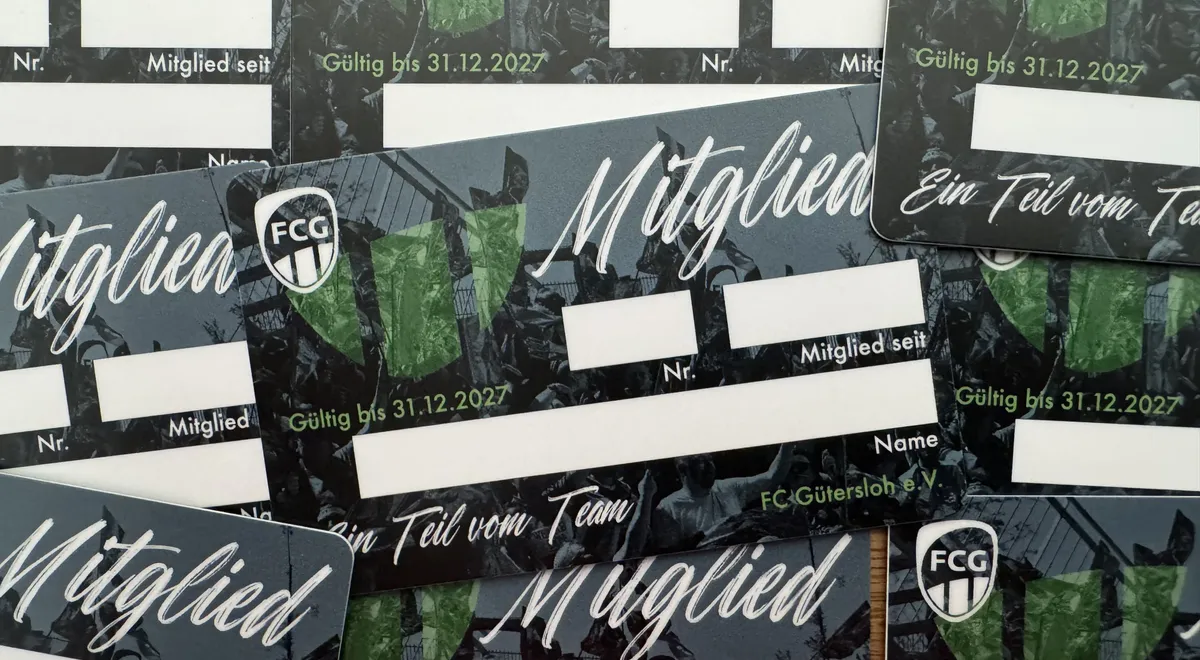 Die neuen Mitgliedsausweise des FC Gütersloh sind da! Die bisherigen Karten waren offiziell nur bis zum 31. Dezember 2025 gültig, konnten aber bislang noch weiter genutzt werden.