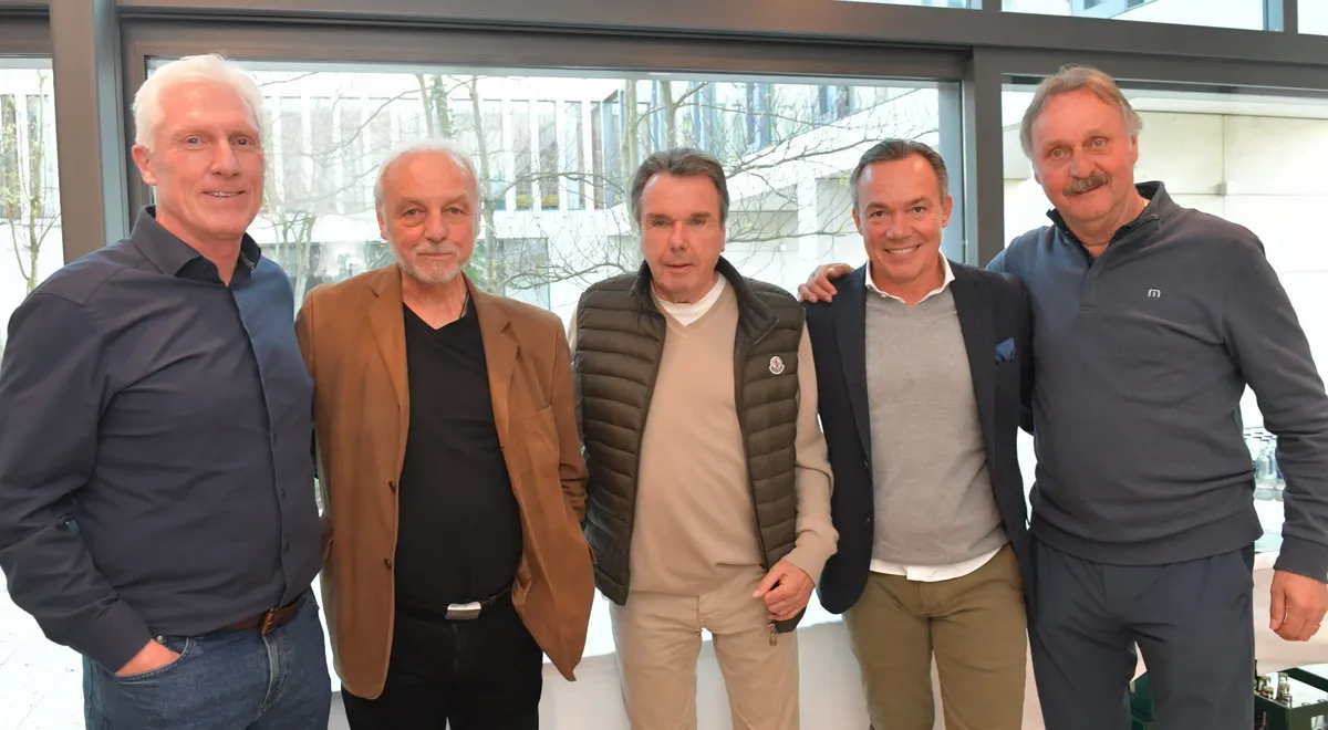 Foto oben von links: Rob Reekers, Rüdiger Abramczik, Heribert Bruchhagen, Thomas Hagedorn und Peter Neururer Fotos: Jens Dünhölter