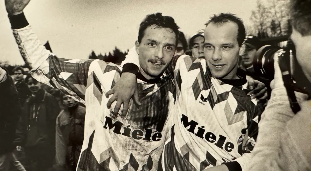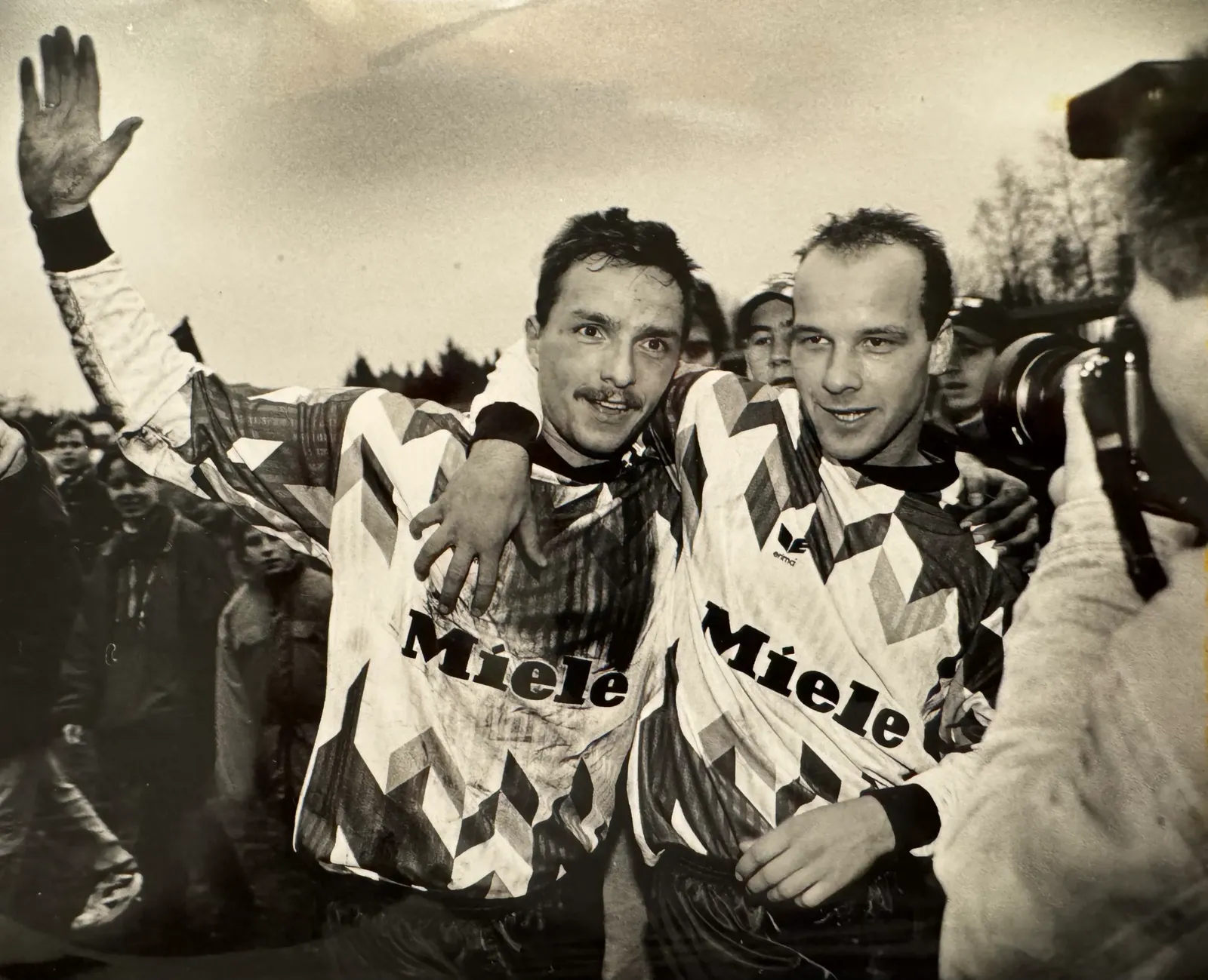 Auf dem Foto von links: Steffen Enge mit seinem damaligen Stürmerkollegen Uwe Westermann