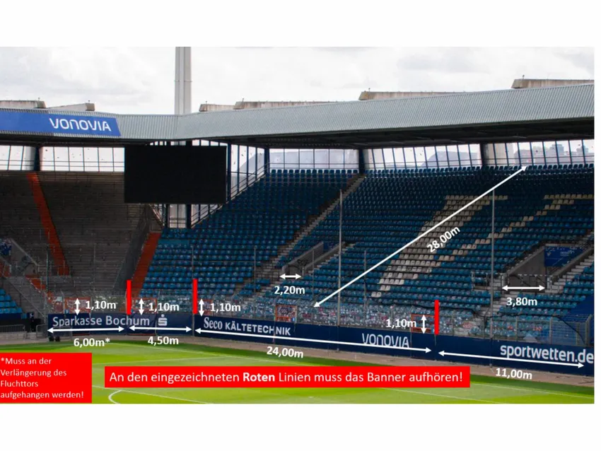 - - In Bochum gibt es reichlich Platz für Zaunfahnen, allerdings haben wir traditionell auch immer viele Zaunfahnen im Gepäck. Deswegen beachtet bitte die Brandschutzbestimmungen zu orangefarbenen Fluchttoren: