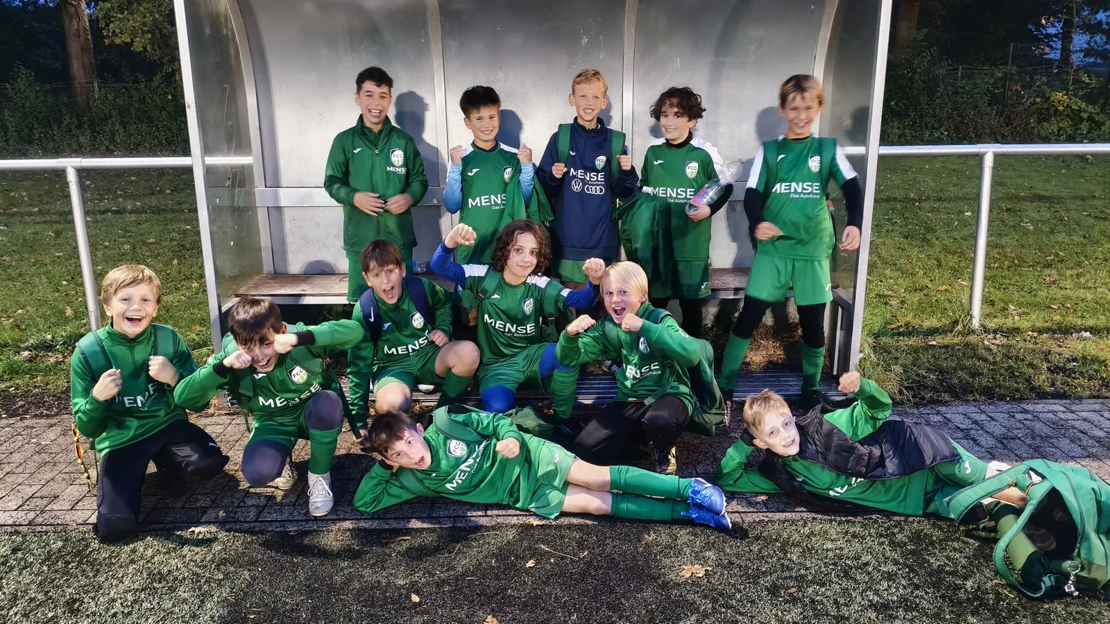 Die E3-Junioren (Foto) holten in ihrer Liga den neunten Sieg im neunten Spiel. Am letzten Spieltag traf das Team auf den Tabellenletzten FC Sürenheide. Stefan Siegel vom E3-Trainerteam berichtet: Die Jungs, zeigten gleich von anfangen, wer Herr im Hause ist. So dominierten wir das Spiel von Beginn an mit gutem Stellungsspiel, mutigem Einsatz in den Zweikämpfen sowie tollen Spielzügen. In der ersten Minute hat es auch schon geklingelt. Es lief ein Angriff über links, der Ball wurde hart in die Mitte gespielt und unser Mittelstürmer stand in der Mitte, wo ein Mittelstürmer stehen muss. In der Folge haben wir uns eine Torchance nach der anderen erspielt. Der 19:2 Sieg hätte durchaus höher ausfallen können. Die Gegentore fielen aus Nachlässigkeit und aufgrund leichter Konzentrationsschwächen. Besonders gefreut hat uns, dass die im Laufe der letzten Woche trainierten Inhalte auch super umgesetzt wurden. Die Abwehr stand bis auf zweimal sattelfest, das Mittelfeld hat ordentlich Dampf gemacht, und die Stürmer haben das gemacht, wofür sie da sind. Coach David Martinez Aklvarez hat zum letzten Spiel alle Kinder nominiert und es wurde ein Schützenfest. So geht die E3 ungeschlagen in die Winterpause. Aus neun Spielen holte das Team 27 Punkte bei 86:7 Toren.