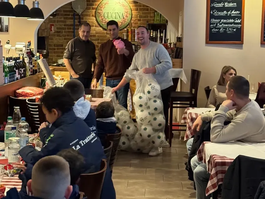 Da bekamen die F2-Junioren des FC Gütersloh glänzende Augen. Die Kids feierten in der La Trattoria in Gütersloh ihre Weihnachtsfeier, wo sie selbst ihre Pizza backen durften. Dabei gab es nicht nur Pizza, sondern auch Geschenke von den Sponsoren. „Wir bedanken uns bei Gia und Shefket Pjeca vom La Trattoria, die die Kinder immer so toll unterstützen, für die mega Weihnachtsfeier, den neuen Trikotsatz und die neuen Winterjacken. Dazu sagen wir Danke an die Premium Food Group für die gesponserten Bälle und Sparschweine“, freuen sich Christian Gümüs und Michael Kowalski vom Trainerteam der F2-Junioren über die Unterstützung.